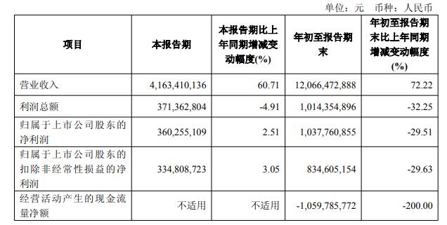 中国经济网北京10月31日讯:四通科技(688169.SH)今日股价下跌,跌幅12.04%,收于163.40元。石头科技昨晚发布了2025年第三季度报告。今年前三季度,公司实现营业利润120.66亿元,比去年同期增长72.22%。归属于上市公司股东的净利润10.38亿元,同比下降29.51%。扣除非经常性损益后,归属于上市公司股东的净利润8.35亿元,较上年同期下降29.63%。经营活动产生的现金流量净额为-10.6亿元,上年同期为10.6亿元。